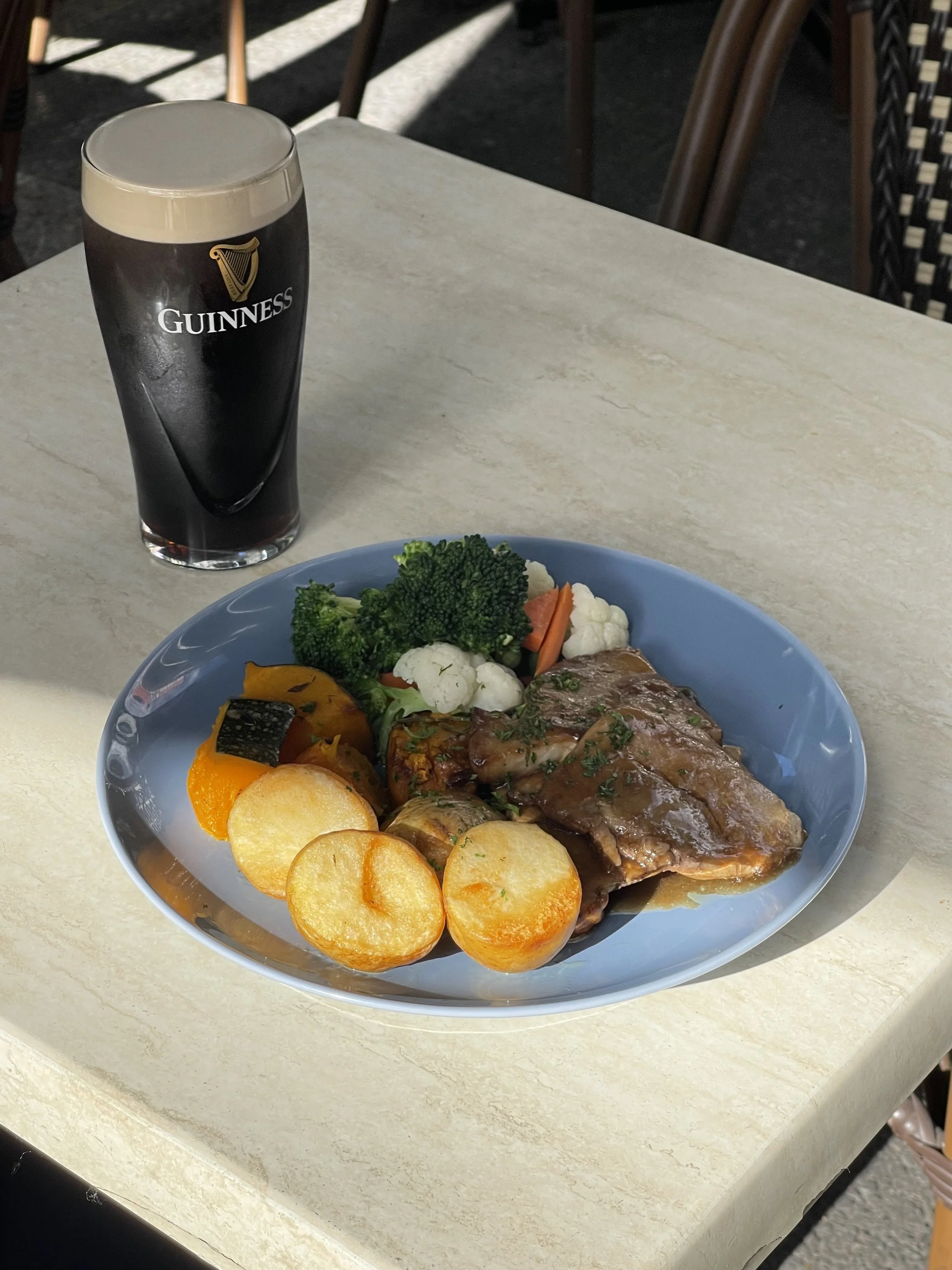 Flavourful roast beef or pork, hearty seasonal vegetables, crisp roasted potatoes & plenty of our delicious gravy - best paired with a pint of Guinness, here’s to your weekend!